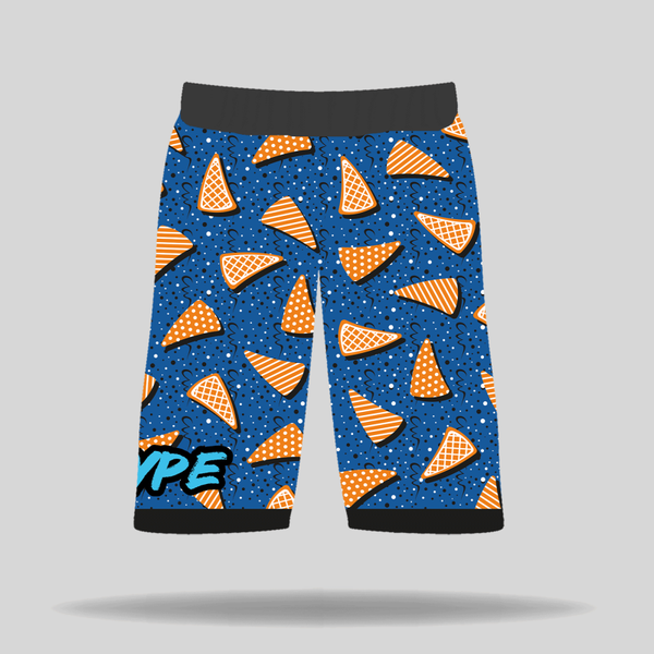 Pantaloncini ‘FoodVibe’: elastico in vita con coulisse, decorati con coni gelato e fette di pizza per un look ironico e irresistibilmente estivo