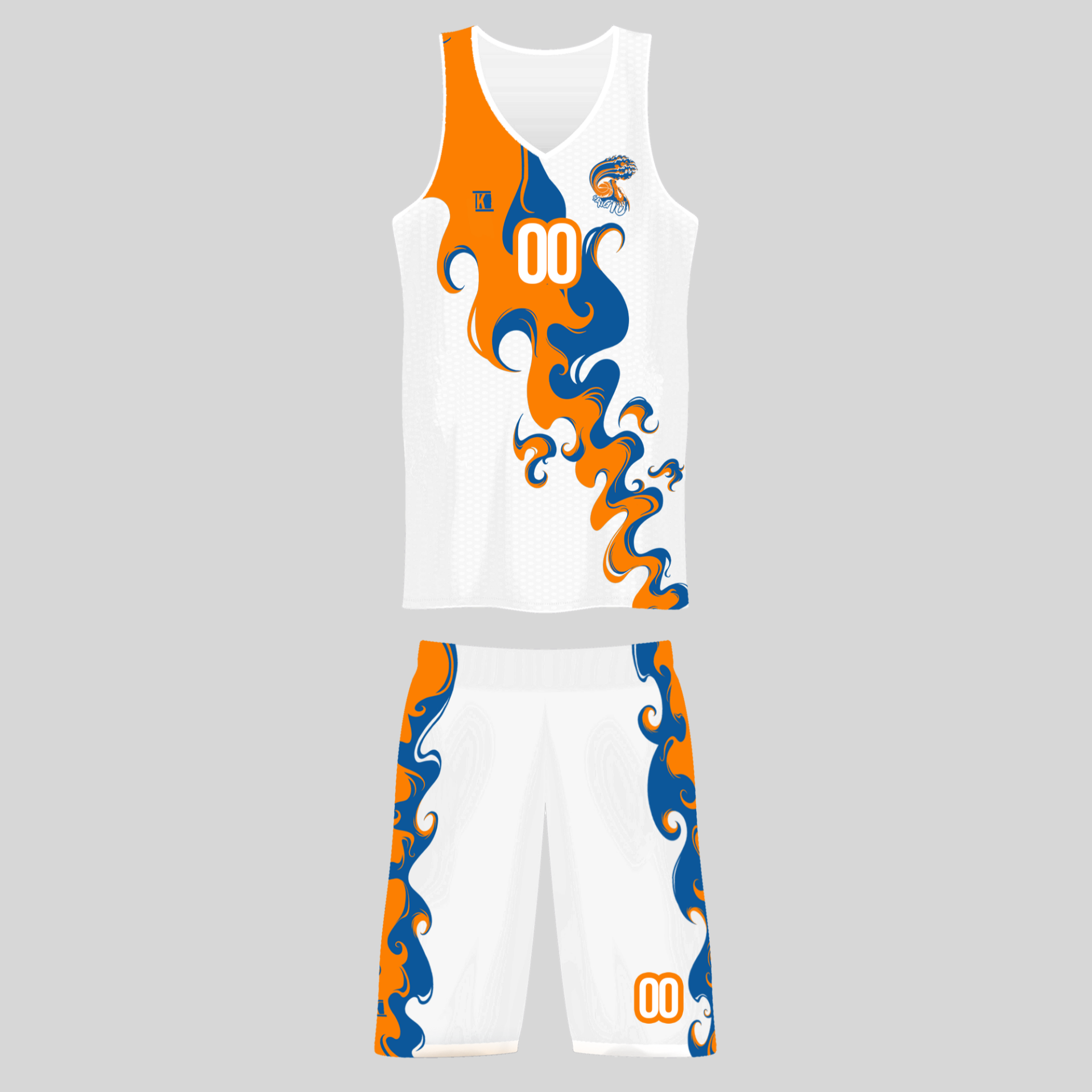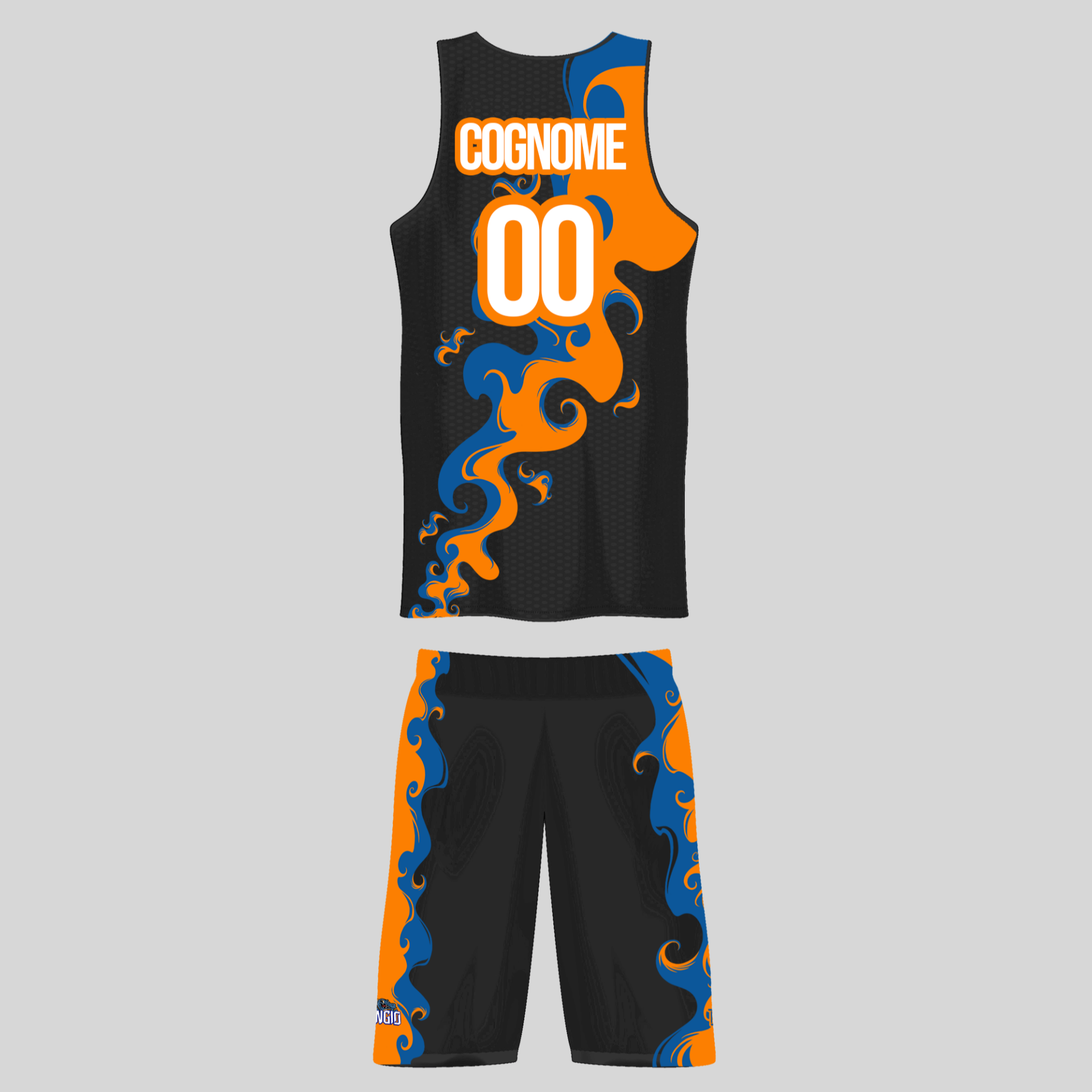 Divisa Kendu by Sangio in tessuto tecnico traspirante. Disponibile completa o solo canotta / solo pantaloncini.Personalizza con nome e numero.